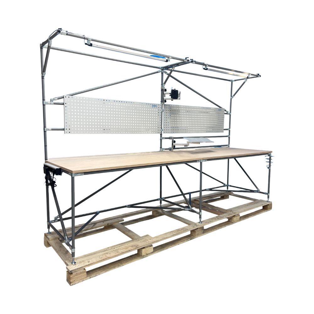 تم تصميم محطة العمل المريحة لتعزيز راحة المشغل وإنتاجيته من خلال ارتفاع عمل محسّن وتصميم سهل الاستخدام، في حين أن بنيتها المعيارية تسمح بالتكيف بسهولة مع مختلف سير العمل والملحقات. تضمن الألواح المثقبة المدمجة والإضاءة وإمكانية الوصول إلى الطاقة تنظيمًا ورؤية ممتازين، مع إبقاء الأدوات والمعدات في متناول اليد. تم تصميم محطة العمل هذه بإطار صناعي متين، وهي مثالية للاستخدام اليومي المستمر، حيث توفر موثوقية وكفاءة على المدى الطويل وبيئة عمل جيدة التنظيم.