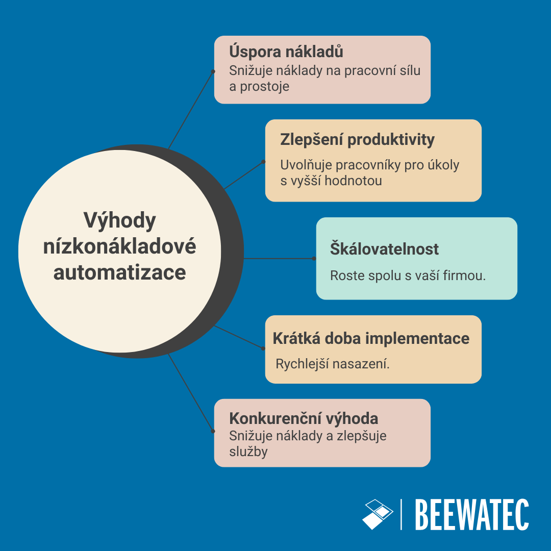 Nízkonákladová automatizace (Low-Cost Automation - LCA) označuje použití cenově dostupných, jednoduchých a praktických automatizačních řešení, která pomáhají podnikům optimalizovat provoz bez vysokých počátečních nákladů, jež jsou obvykle spojeny s tradičními automatizačními systémy pro dané odvětví. Na rozdíl od složitých a drahých průmyslových robotů nebo strojů se LCA zaměřuje na integraci základních automatizačních technologií, které zvyšují efektivitu a produktivitu při zachování nízkých nákladů.