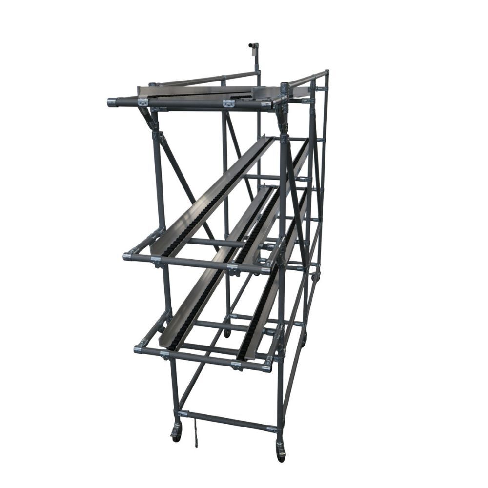Dieses Durchlaufregal mit hoher Kapazität ermöglicht es Ihnen, große Materialmengen zu lagern und dabei stets den vollständigen Überblick und die Kontrolle zu behalten. Es gewährleistet einen reibungslosen FIFO-Fluss, wodurch sich die Bearbeitungszeit verkürzt und die Wege für das Bedienpersonal reduziert werden. Dank seiner robusten, strapazierfähigen Konstruktion bleiben die Materialien übersichtlich, stabil und stets griffbereit. Durch die optimale Nutzung des verfügbaren Platzes und die verbesserte Zugänglichkeit der Materialien trägt es zu effizienteren und optimierten Abläufen in Ihrem gesamten Produktionsbereich bei.