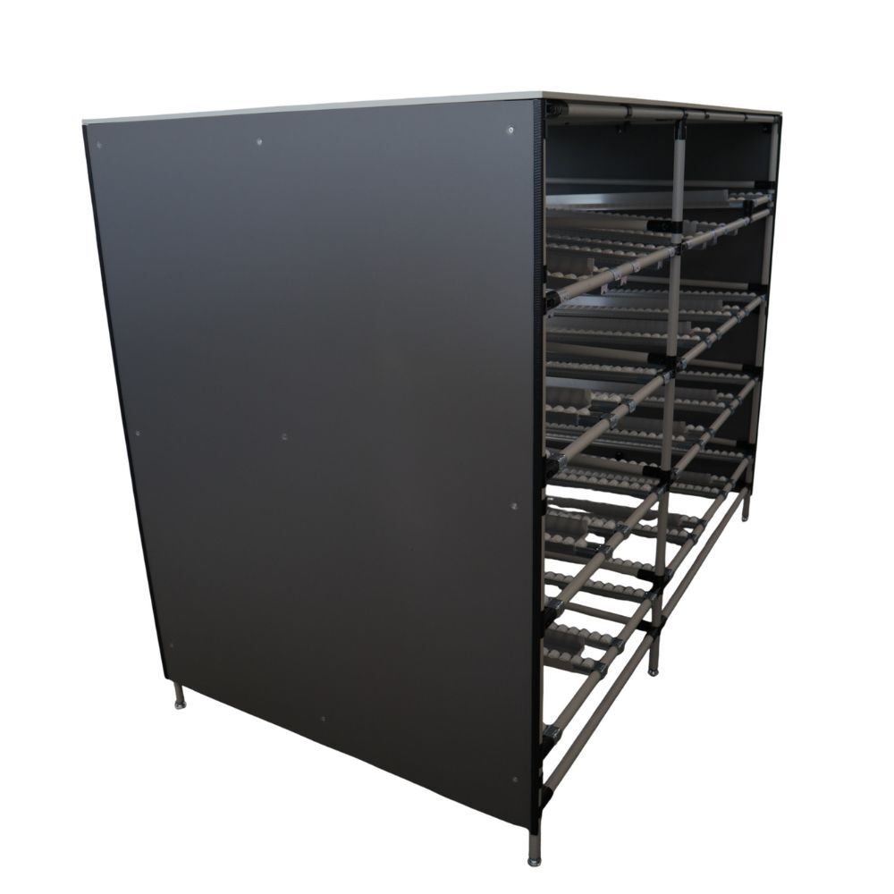 Diese industrielle Durchlaufregalkonstruktion wurde entwickelt, um einen reibungslosen Materialfluss nach dem First-in-First-out-Prinzip (FIFO) für hocheffiziente Produktions- und Montageumgebungen zu gewährleisten. Auf der modularen Basis des BEEWATEC-Systems aufbauend, kombiniert sie einen robusten Rahmen mit geneigten Rollenbahnen und übersichtlich angeordneten Behälterpositionen, damit die Komponenten sichtbar, zugänglich und stets in Bewegung bleiben. Die geschlossenen Seiten- und Deckplatten sorgen für zusätzliche Stabilität und Schutz, während die offene Vorderseite eine schnelle Kommissionierung und Nachfüllung gewährleistet. Diese Konstruktion eignet sich ideal für die Konfektionierung, die Linienbeschickung und die Materialvorbereitung. Sie trägt dazu bei, die Bearbeitungszeit zu verkürzen, Verwechslungen im Lagerbestand zu vermeiden und einen sauberen, ergonomischen Arbeitsbereich zu schaffen, der sich leicht an wechselnde Prozessanforderungen anpassen lässt.