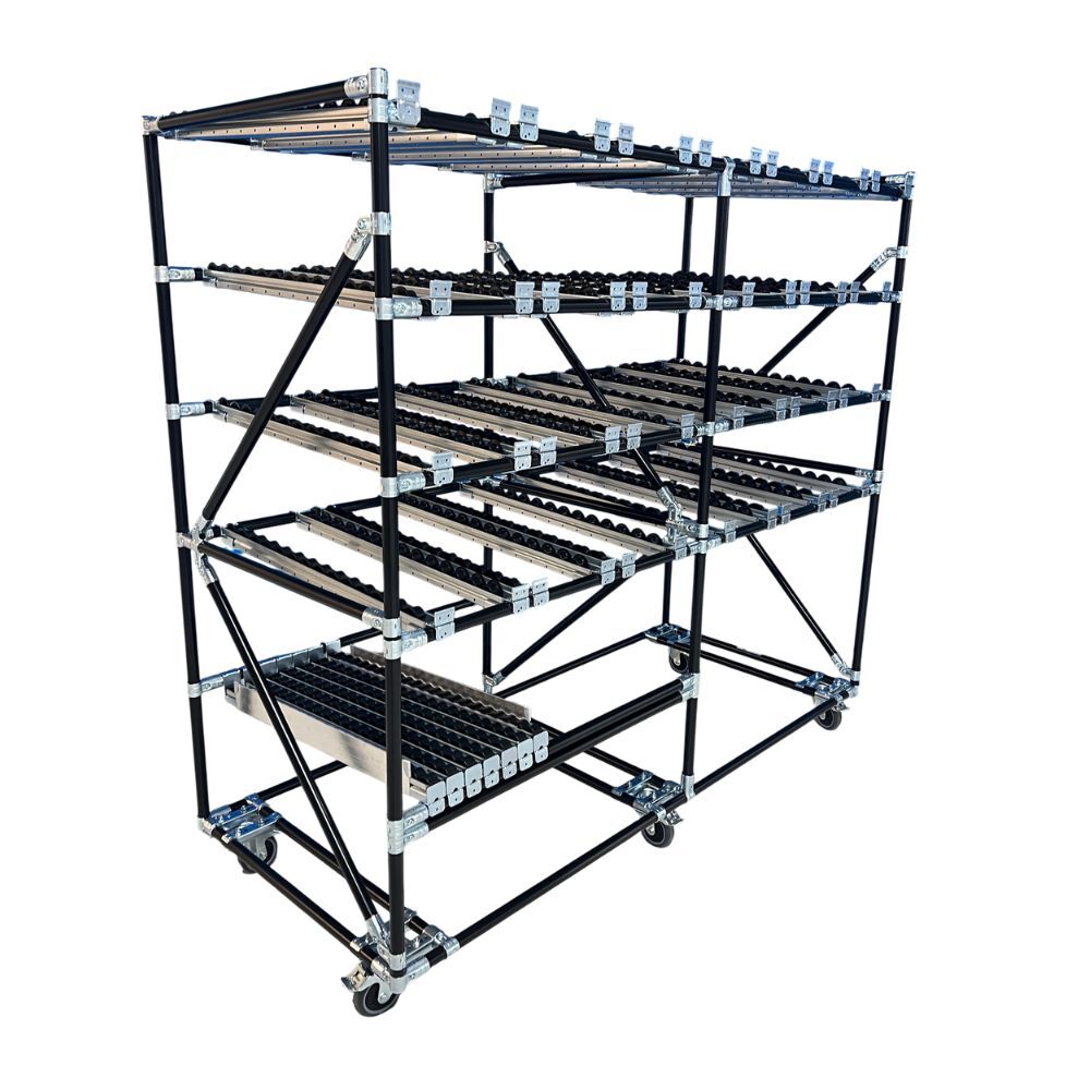 This ESD flow rack delivers a reliable FIFO solution that streamlines material handling while ensuring smooth and controlled product flow. It improves picking speed and visibility by keeping items clearly organized and easily accessible at the point of use. The mobile, modular design allows the rack to adapt easily to changing workflows and layouts, while its ergonomic structure enhances operator comfort and maximizes space utiliz