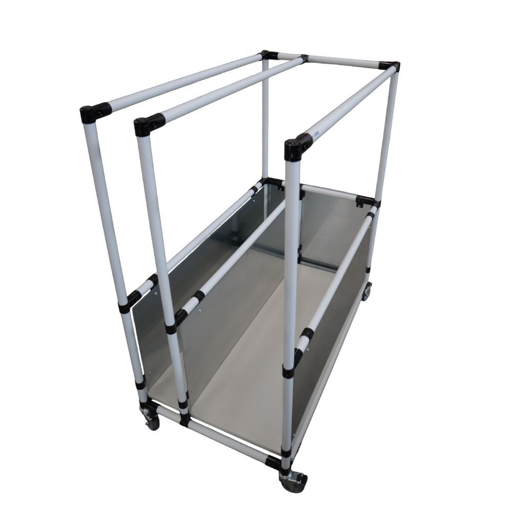 This Stencil Trolley Structure is a robust, mobile solution designed to safely store, transport, and organize production stencils within the workspace. Built from a durable modular frame with protective side panels and smooth-rolling castors, it ensures easy handling while keeping stencils securely separated and protected from damage. The open upper frame allows quick access and clear visibility, improving workflow efficiency and reducing handling time. Its lightweight yet stable construction makes it ideal for dynamic production environments where stencils need to be moved frequently between workstations without compromising safety or organization.