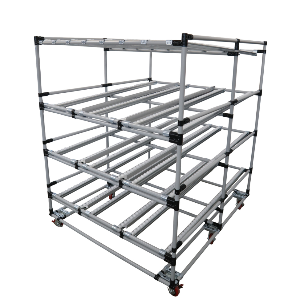 Cette structure d'étagères FIFO est conçue pour optimiser le flux de matériaux en garantissant un processus fluide « premier entré, premier sorti », réduisant ainsi le temps de manutention et évitant l'obsolescence des stocks. Construite avec un cadre modulaire robuste, elle offre plusieurs niveaux alimentés par gravité qui permettent aux produits de se déplacer automatiquement du côté chargement vers le côté prélèvement, améliorant ainsi l'efficacité et l'organisation du lieu de travail. Sa construction stable garantit une capacité de charge élevée, tandis que sa conception ouverte offre une bonne visibilité et un accès facile à tous les articles. Idéal pour les environnements de production, d'assemblage et d'entreposage, ce système FIFO favorise les processus allégés, minimise les erreurs et optimise l'utilisation de l'espace pour un flux de travail plus productif.