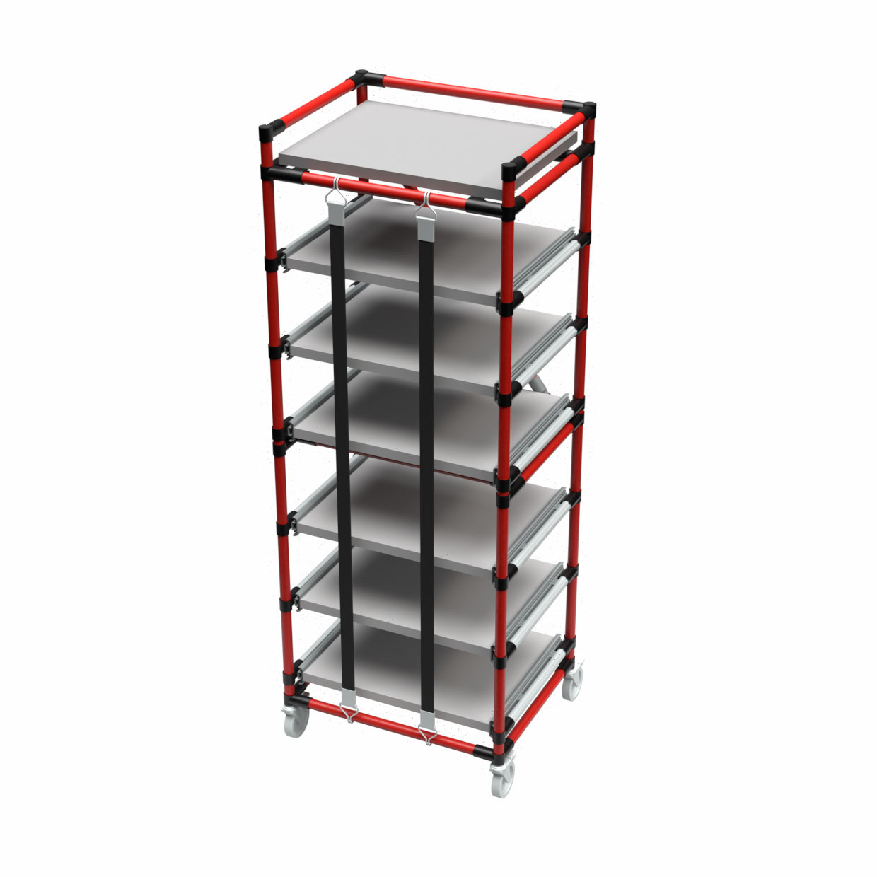 Ten wysuwany regał to zajmujące mało miejsca rozwiązanie do przechowywania, zaprojektowane z myślą o łatwym dostępie, przejrzystej organizacji i płynnym działaniu. Jego solidna modułowa rama zapewnia wysoką stabilność i trwałość, a wysuwane półki umożliwiają pełną widoczność i szybki dostęp do przechowywanych przedmiotów. Regał jest zamontowany na solidnych kółkach, dzięki czemu można go łatwo przemieszczać, co czyni go idealnym rozwiązaniem dla dynamicznych środowisk produkcyjnych i magazynowych. Konstrukcja maksymalizuje wykorzystanie przestrzeni pionowej, zapewnia ergonomiczną wysokość roboczą i pomaga skrócić czas kompletacji zamówień.
